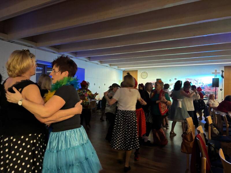 Und sofort ging die Party richtig los. Die Band Royal spielte fleißig und ließ so die „Puppen“ tanzen. Unermüdlich wurde das Tanzbein geschwungen. Gegen 21:30 Uhr sorgte der Auftritt des Boogie Woogie Vereins Quick Feet für eine Verschnaufpause. Und schon gings weiter mit Boogie, Rock´n Roll, Charleston, Samba, Line Dance usw.