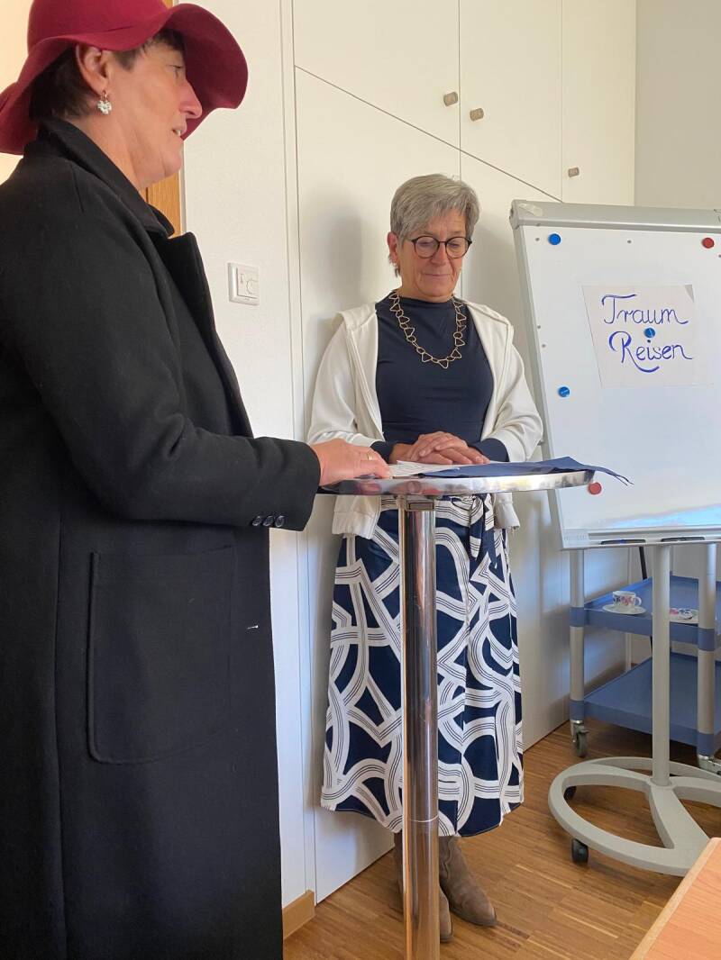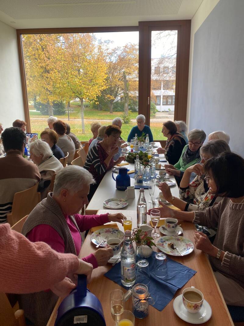 „Zum Geburtstag viel Glück“ stimmten die Vorstandsdamen zur Begrüßung der Geburtstagsjubilare 2025 an. 24 Frauen waren der Einladung gefolgt, die jüngsten 70, die älteste 95 Jahre jung. Karola begrüßte alle mit einem schönen Gedicht im kuscheligen blauen Zimmer des Pfarrheims. Mit einem Gläschen Sekt stießen dann alle gemeinsam auf das Wohl an. Das Tortenbuffet, gebacken von einigen Vorstandsdamen, sorgte für die Qual der Wahl. Eine Torte verlockender als die andere. „Es ist immer wieder spannend, wer alles in diesem Jahr einen runden oder halbrunden Geburtstag feiern darf.", hörte man immer wieder. Nach einer Stunde intensiver Gespräche, sorgten Elfriede und Angela mit dem Sketch „Reisebüro Traum – Reisen“ für viele Lacher.