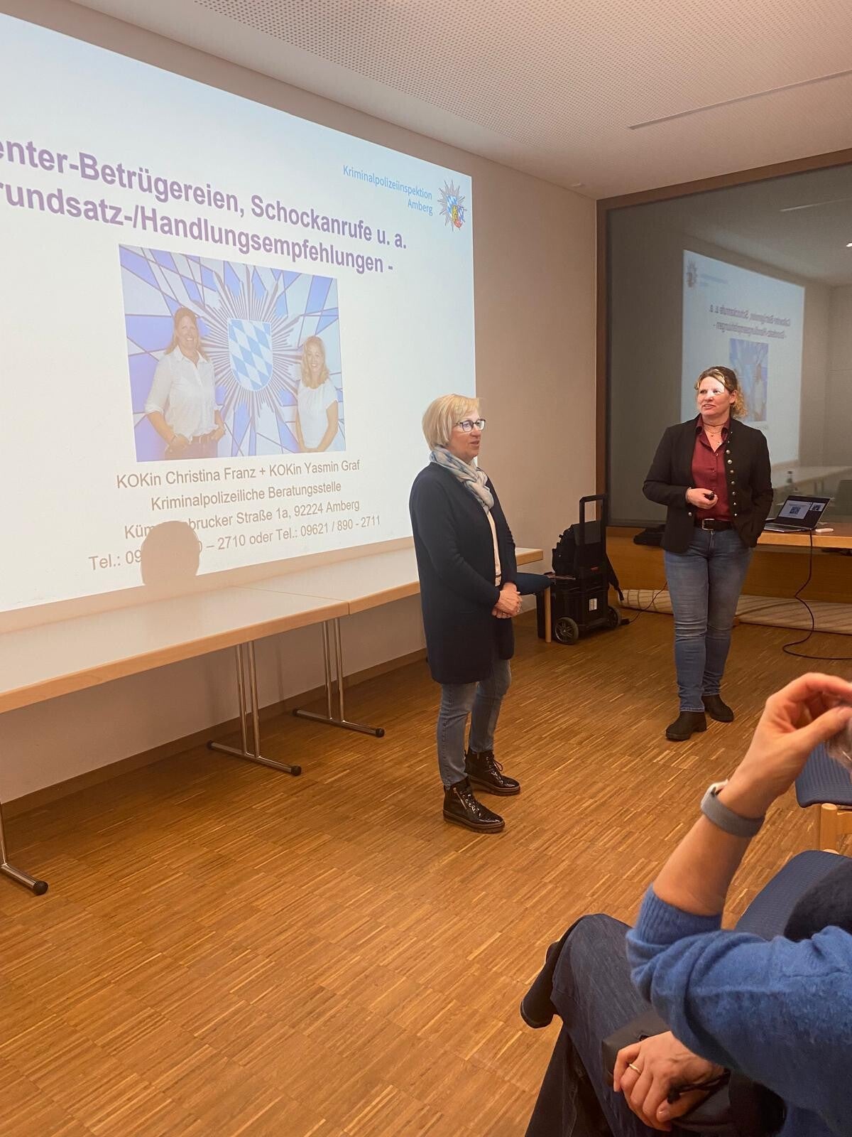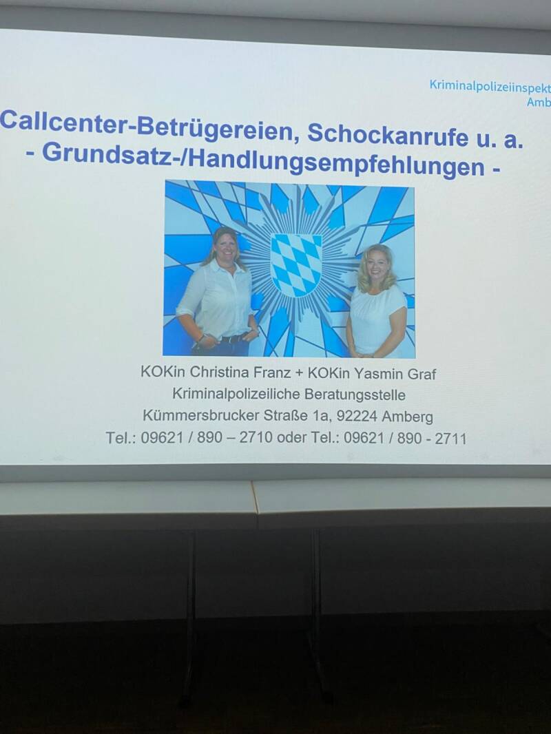 „Hilfe, wie soll ich reagieren?“ Diese und ähnliche Fragen klärte Kriminaloberkommissarin Christina Schwarz von der Kriminalinspektion Amberg auf Einladung des katholischen Frauenbundes Schwarzenfeld. Gut 40 Teilnehmer holten sich Rat. „Hier spricht die Polizei. Ihre Tochter ist in einen schweren Unfall verwickelt,…“ So oder so ähnlich versetzen Betrüger Menschen in Angst und Panik. Doch wie sollte man reagieren? Die Polizistin schlägt vor, auf Zeit zu spielen und zuerst Rückfragen zu halten. Rufen Sie dann bei der nächsten Polizeiinspektion an, allerdings nie unter der 110. Damit landen Sie nur wieder bei dem Schockanrufer, der die Nummer manipuliert hat. Auch die Polizei wird sich nie unter dieser Nummer 110 bei Ihnen melden. Das ist schon das erste Anzeichen eines Schwindels. Erscheint auf Ihrem Display diese Telefonnummer, können Sie bereits von einem falschen Anruf ausgehen. Außerdem wird ein Polizist niemals Wertsachen oder Geld von Ihnen zur Aufbewahrung abholen.
