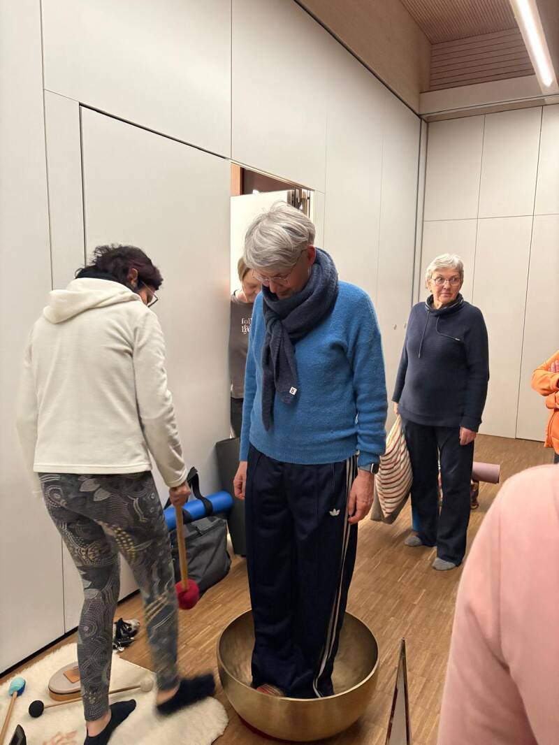 Wer wollte, durfte sich anschließend noch in die große Klangschale stellen, bevor Carmen die Töne anschlug. Unglaublich wie schnell sich diese Vibration im ganzen Körper verteilte.